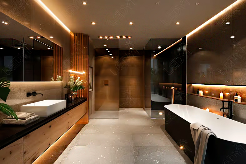 O objetivo dessa luz não é clarear todo o ambiente, mas indicar o caminho correto a ser seguido. Portanto, a iluminação de orientação deve ser mais fraca que as demais. Vale destacar que fios de LED e luzes estilo pisca-pisca não são indicados para essa tarefa, pois as pessoas podem enrolar os pés nos fios e se acidentar. A iluminação indireta deve ser feita por lâmpadas embutidas.