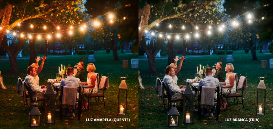 A temperatura de cor é a característica das lâmpadas que provocam o efeito visual quente, frio ou neutro. Isso significa que, dependendo da lâmpada, as paredes do seu quarto, por exemplo, podem parecer mais ou menos coloridas. A luz amarela, considerada quente, possui temperatura de cor de 2700 K, enquanto a branca, também conhecida como fria, tem cerca de 6500 K.