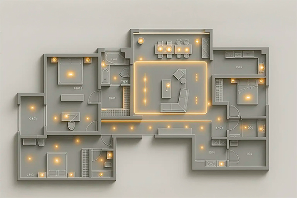 Seleção de Tipos de Iluminação: Determine os tipos de iluminação necessários para diferentes áreas do espaço: iluminação geral, iluminação de tarefa e iluminação de destaque. Escolha as fontes de luz apropriadas, levando em consideração a temperatura de cor e a eficiência energética.