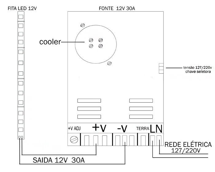 Fonte Chaveada / – Alimentação de Fita LED modelo: eletrônica