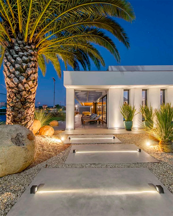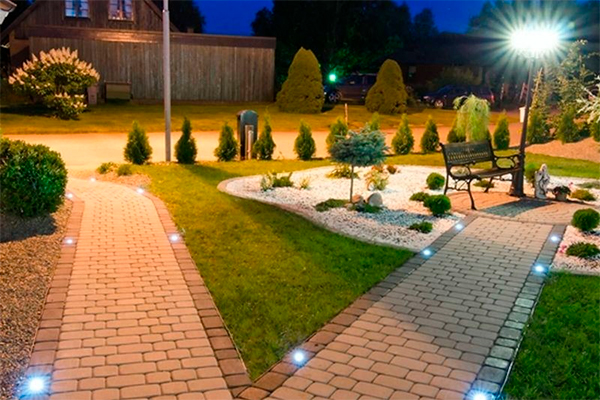 Iluminação Embutida: Utilize luzes embutidas no solo para criar efeitos de iluminação suave e destacar caminhos.