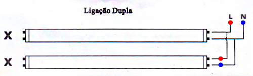 3º. Ligue a fase e o neutro da tensão diretamente nos soquetes da calha, conforme esquema elétrico abaixo: