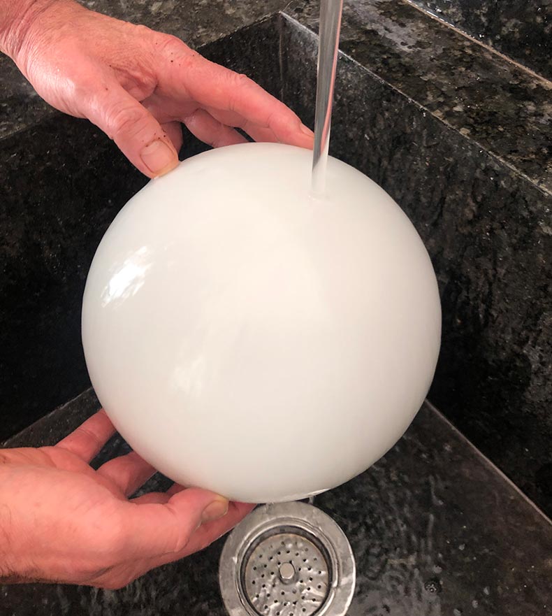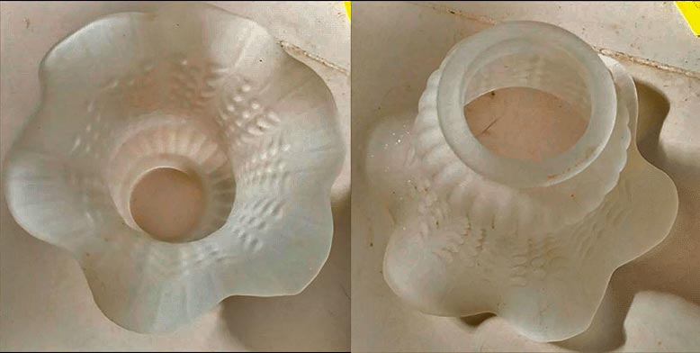 Os Globos externos com o passar do tempo expostos aos intempéries, vai aderindo em sua superfície uma “crosta” de poluição, poeira com umidade criando uma película de sujeira, e dependendo do tipo de lâmpada usada o calor da mesma ajuda a amarelar mais o vidro fosco, perdendo toda a beleza do fosco, no caso do vidro leitoso fosco ainda perde mais o acetinado. (exemplos nas fotos abaixo)