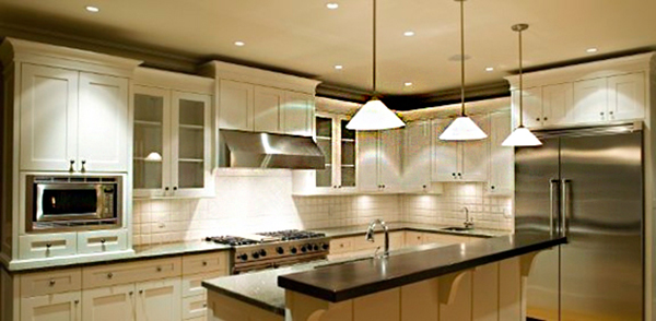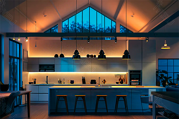 Cores de Luz: Escolha lâmpadas com uma temperatura de cor adequada. Para áreas de preparação, luzes brancas neutras (4000K) são ideais, enquanto luzes mais quentes (3000K) funcionam bem para áreas de jantar.
