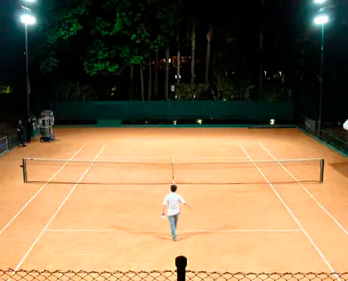 O projeto luminotécnico deve considerar o ofuscamento, a uniformidade em toda quadra, os lumes por metro quadrado, altura adequada para instalar o projetores para selecionar o produto mais adequado para quadra.