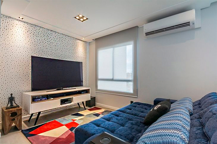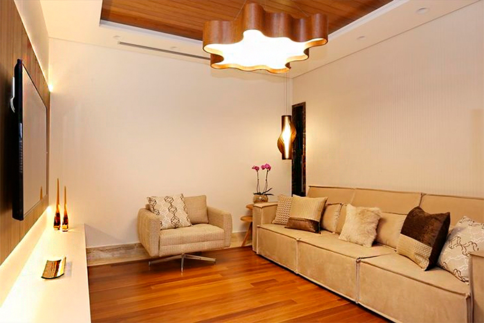 Quando não estiver ligada a TV os moradores podem utilizar a sala para outra finalidade, e só controlar a luminosidade desejada com o dimmer.