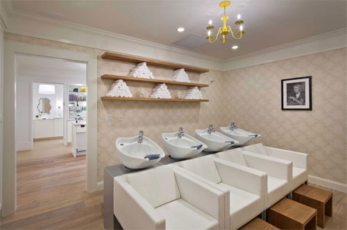 Dicas de iluminação para Salão de Beleza, Iluminação da área de lavagem dos cabelos, neste local a iluminação intensa não é muito recomendada, deve ter apenas uma luz suave, bem iluminado, mas sem ofuscar, peças com vidros foscos e acrílicos leitoso são recomendadas, pois na lavagem nenhum cliente gosta de ter um foco de luz em seu rosto.