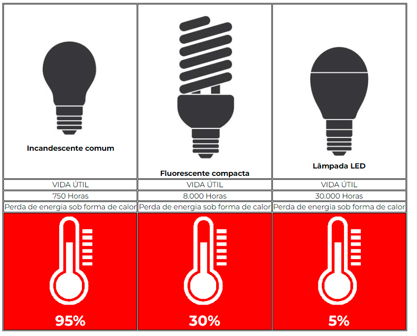 - Durabilidade: Dura muito mais que incandescentes e fluorescentes.