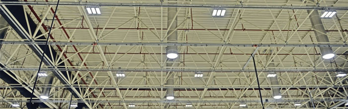Iluminação de LED para galpões, indústrias, almoxarifados, logística, supermercado, distribuidoras, câmara fria, fachadas, pátios, estacionamentos, hangares, indústria, shopping centers, museus, centro de distribuição, aeroporto, e toda grande área com pé direito alto.