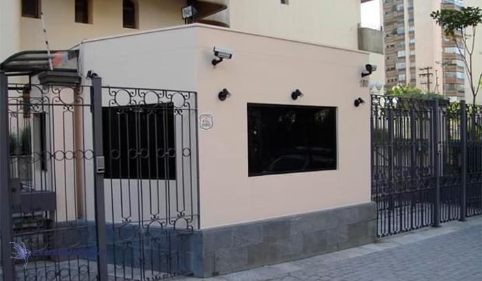 O porteiro tem que ter uma visão geral de todas as passagens, além disso, o sensor deve emitir uma luz para os carros que vem chegando, e ter luz necessária para a câmera poder filmar veja em Refletores Direcionados Clicando Aqui!, dentro da guarita ter uma luz fraca apenas para o movimento do porteiro, mas tem que ter a opção de luz forte, deve ter outros interpores para outras área próximas. O portão de pedestres deve ter o portão duplo de segurança e o meio deve ser bem iluminado para poder identificar os que entram e poder filmar sem duvidas.