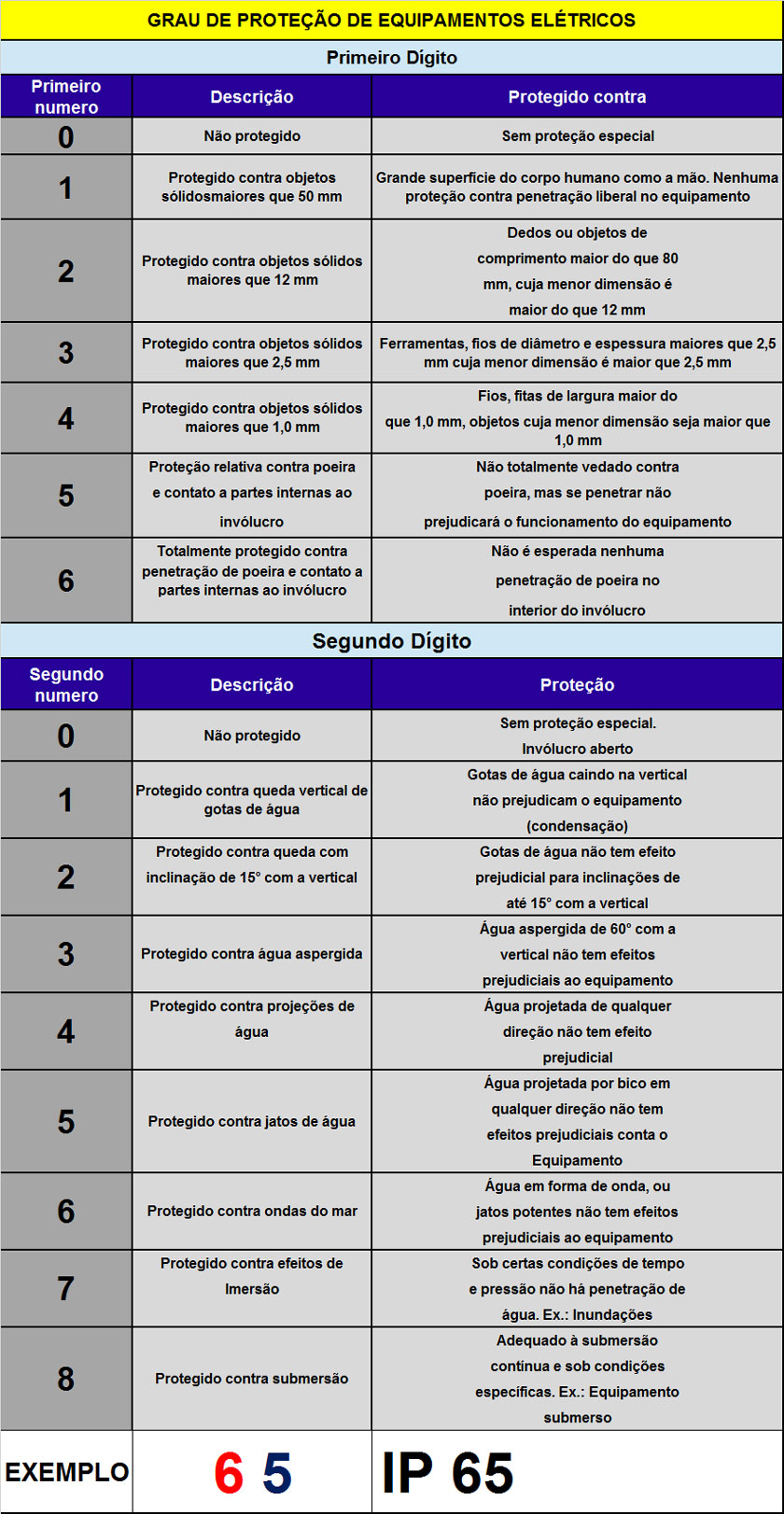 - 3: Protegido contra objetos sólidos maiores que 2,5 mm (ferramentas, fios).