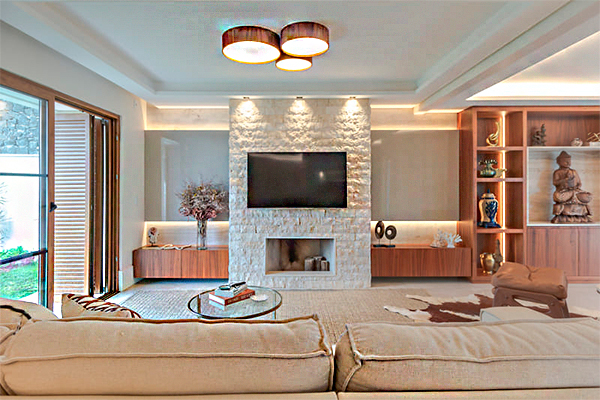 Varandas e Terraços Cobertos: Use plafons em áreas externas cobertas para criar uma iluminação agradável e convidativa.