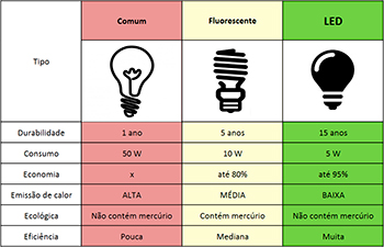 A economia na conta de luz ao preferir lâmpadas de LED pode ser de até 33%. Por isso, mesmo que o investimento inicial para comprá-las seja um pouco maior, ele é compensado em alguns meses de uso: