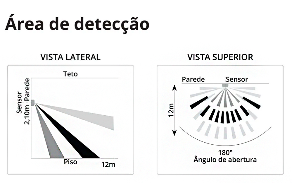 A área de cobertura é definida de acordo com o local que quer proteger, normalmente de 8 a 12 metros, porém, só é indicada a instalação em áreas internas.