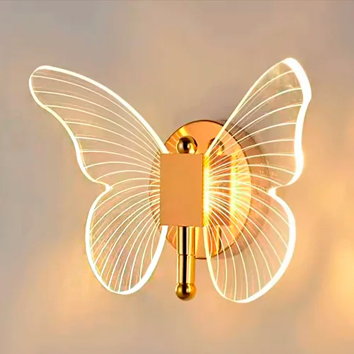 A luz é suave e quente (amarelada), emanando do centro e iluminando as asas, criando um efeito elegante e moderno.
