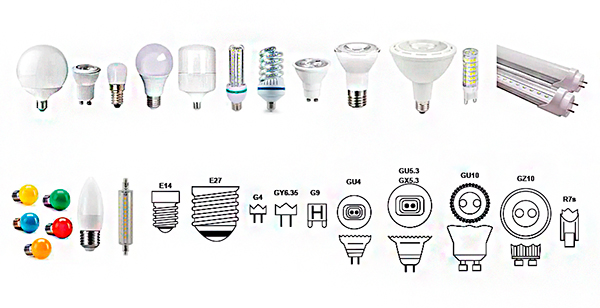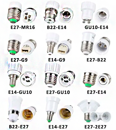E27, E40, E14, Bi-pino, G4, G9, G5.3 e etc.