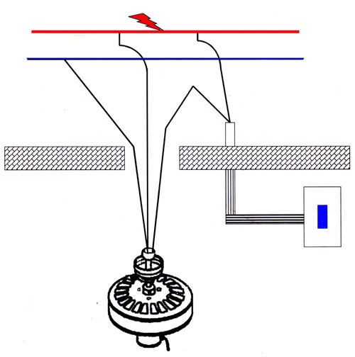 Atenção nunca instale o ventilador com 2 fios, juntando o fio força do motor com o fio força da luz.