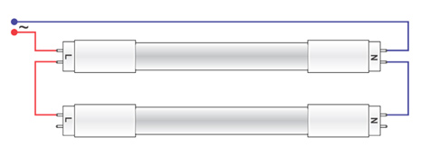 Este é o padrão mais comum nos modelos mais novos de lâmpadas LED tubulares (T8 e T5).