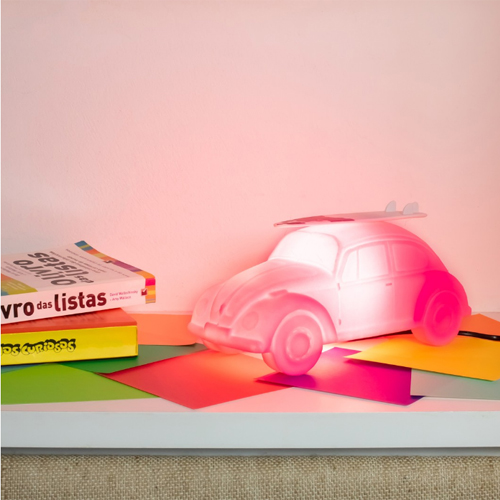 A luminária fusca com prancha é dica de presente e decoração perfeita pra quem curte um surf e um clima retrô. É fundesign unindo uma forma retrô com um conceito atual.