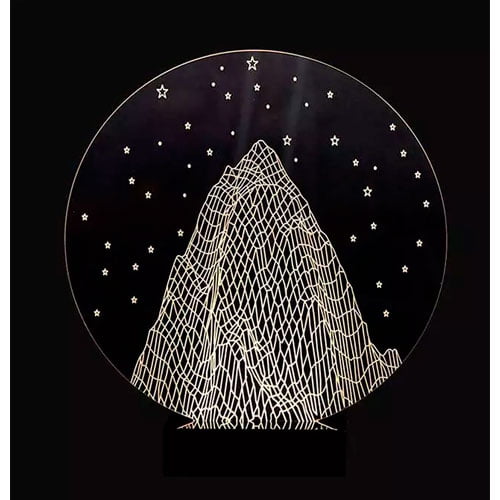 Modelo: Abajur – Montanha Material: Acrílico Potência: 4W LED – 3000K Tensão: 127v / 220v Dimensões (cm): A:32 / L:30
