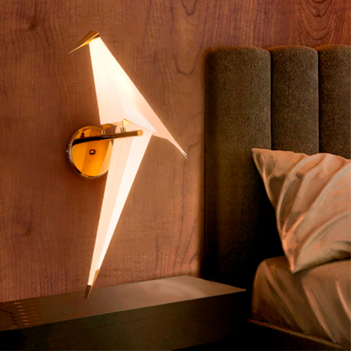 Com um visual que remete à técnica de dobradura, a arandela evoca o minimalismo e a leveza do origami, criando uma atmosfera de tranquilidade e contemplação. Seu formato escultórico proporciona um ponto focal elegante, ao mesmo tempo em que oferece uma iluminação suave e acolhedora, ideal para criar climas intimistas em diversos espaços residenciais e comerciais. A presença do pássaro, fixado por atração magnética, adiciona uma camada de sofisticação e inovação à peça, convidando o olhar a explorar seus detalhes e formas com curiosidade e encanto.