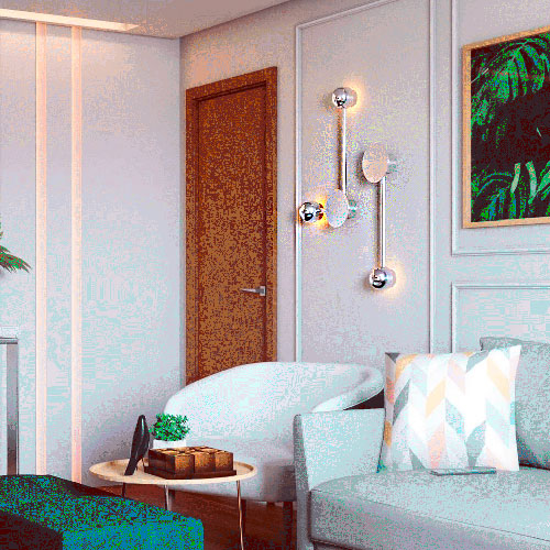Como se trata de um produto de fabricação nacional, o controle de qualidade e o cuidado nos acabamentos são perceptíveis. Além disso, é possível encontrar a Arandela Conchiglia direita em diferentes cores, permitindo a personalização de acordo com a paleta de cada projeto.