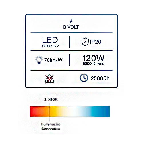 As luminárias são fabricadas para uso interno, portanto sugerimos deixá-la fora da ação do tempo, como sol e chuva.