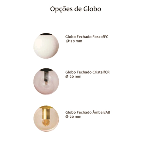 Disponibilidade de Cores de Globo: Fosco, Cristal e Âmbar.