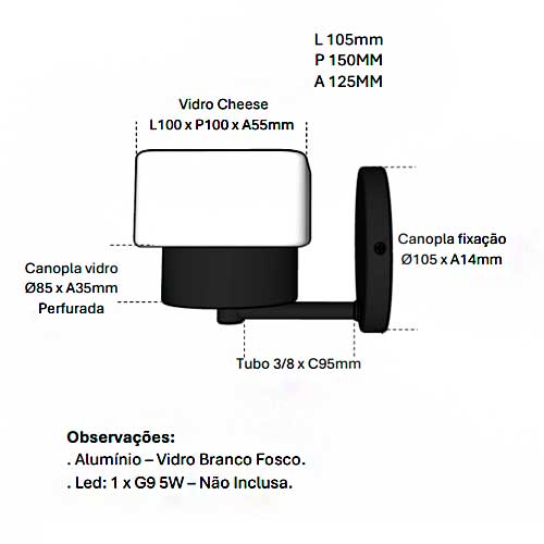 É importante destacar que, por se tratar de um produto com índice de proteção IP20, a arandela não deve ser exposta a condições climáticas externas como sol, chuva ou vento. Isso garante sua durabilidade e o bom funcionamento ao longo do tempo. A manutenção também é simples, podendo ser feita com o uso de flanela seca ou úmida e espanador, evitando produtos químicos que possam danificar o acabamento.