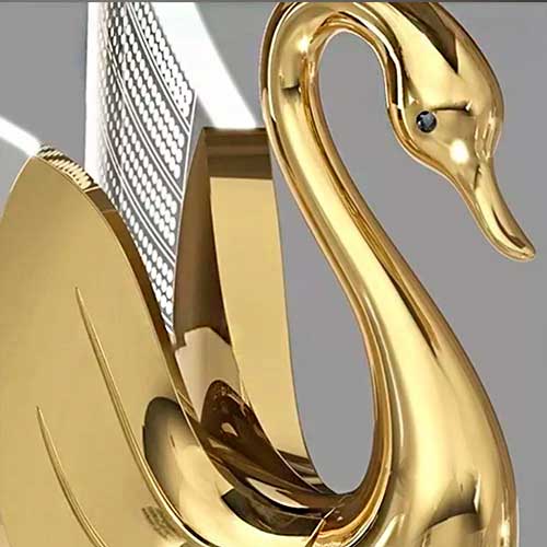 Arandela LED Cisne 10W com acabamento dourado e detalhes que remetem à leveza e fluidez das formas naturais, essa luminária de parede é perfeita para criar atmosferas agradáveis e acolhedoras em diversos ambientes residenciais ou comerciais. Seja em corredores, salas, lavabos ou até mesmo em estabelecimentos como restaurantes, hotéis e pubs, a arandela se destaca por sua presença marcante, mesmo quando está desligada.