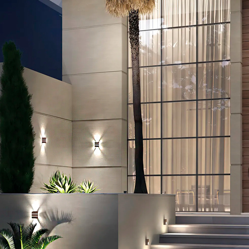 Versátil e prática, a Arandela Light 3 Frisos adapta-se facilmente a diversas propostas arquitetônicas. Seja em residências, condomínios, áreas comerciais ou espaços públicos como praças e estacionamentos, sua presença transforma o ambiente, reforçando a identidade visual do local. Com um design atual e harmonioso, essa arandela compõe com perfeição desde projetos minimalistas até aqueles mais elaborados, realçando volumes e texturas das superfícies onde é instalada.