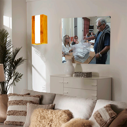 Arandela Madeira Facho Vertical é uma luminária de parede elegante e funcional, perfeita para iluminar espaços internos com estilo e sofisticação.