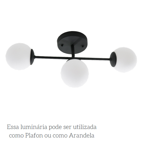 Com visual contemporâneo e linhas bem definidas, a arandela Mariano Triplo harmoniza com diferentes estilos de decoração, do minimalismo ao industrial, passando pelo clássico repaginado. Seu formato equilibrado favorece a composição estética das paredes, adicionando um ponto de interesse visual que valoriza o espaço. A presença de globos bem posicionados confere um aspecto leve e sofisticado à peça, tornando-a um elemento decorativo por si só, mesmo quando apagada.