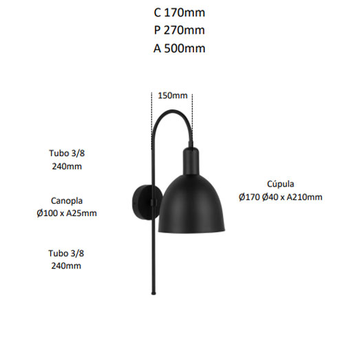 Lâmpada: 1x LED – 3000K ou 6500K (NÃO INCLUSO)