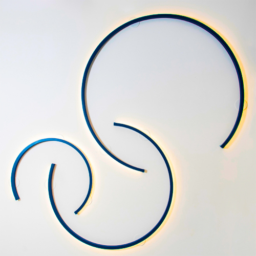 O formato circular em diferentes diâmetros proporciona liberdade de escolha para adequar o produto ao tamanho do ambiente. Modelos menores são ideais para pontos de luz específicos ou áreas reduzidas, enquanto versões maiores se destacam como elemento central de iluminação e decoração. Quando combinadas, diferentes medidas podem criar composições impactantes, funcionando tanto em paredes quanto em tetos.