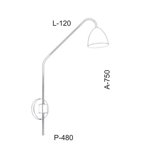 Em relação às dimensões, a arandela possui uma estrutura com largura de 120mm, profundidade de 480mm e altura de 750mm. O globo tem um diâmetro de 120mm, contribuindo para a elegância geral da peça.