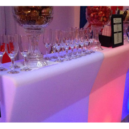 Tem na área de trabalho nicho na parte inferior interna, para objetos e porta garrafas. BASE de Led RGB de 4 watts e baterias recarregáveis, tem controle remoto infravermelho com 24 funções para a seleção de cores, que possui escala RGB, controle de velocidade lançada, controle o brilho e on / off.