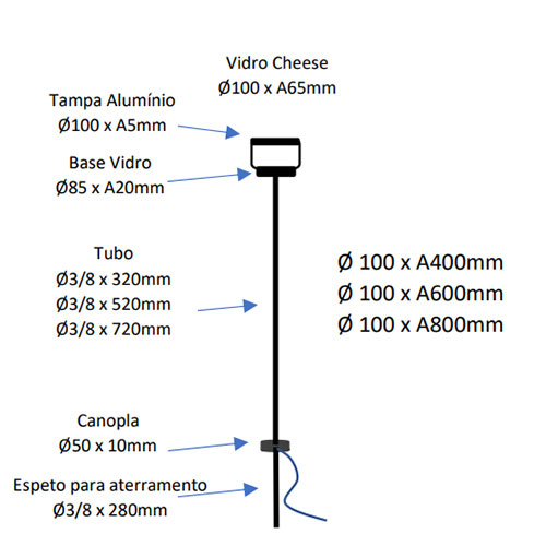 Disponível em diversas alturas (400mm, 600mm e 800mm), o Balizador Espeto Cheese Tamp se adapta a diferentes necessidades e propostas de design. Além disso, a variedade de cores — branco, preto e verde fosco — permite a personalização, garantindo que o produto se encaixe perfeitamente em qualquer projeto arquitetônico ou paisagístico.