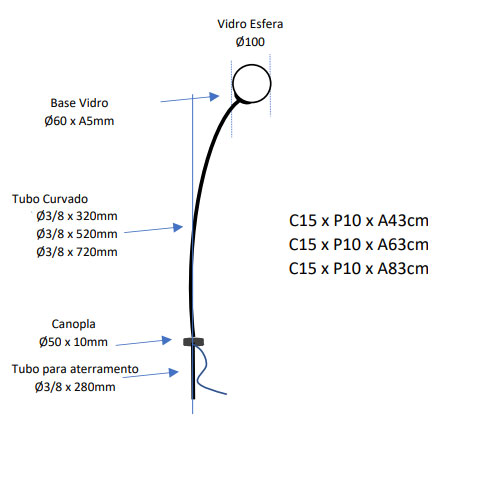 Modelo: Balizador Espeto Esfera 14cm Curvo