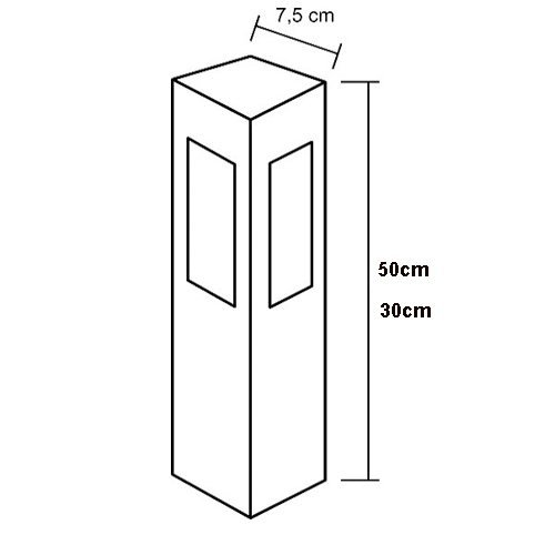 Dimensões (cm): A: 30cm/50cm x 7,5cm