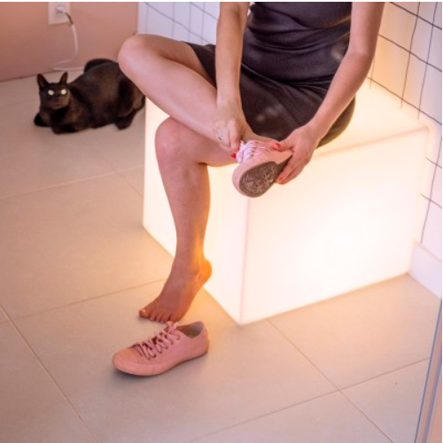 Clean e moderno, o box 55 é uma peça super versátil. É uma luminária de piso que pode ser usada como banco, mesa de canto ou de centro, ou até como móvel de cabeceira. Criatividade na decoração e na iluminação.
