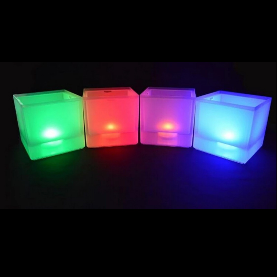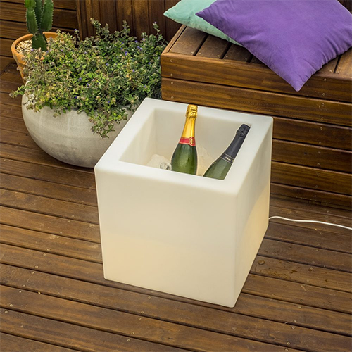 Cachepô com iluminação interna com visual clean e moderno, como porta gelo, bar ou vaso.Tem iluminação interna tem visual clean e moderno e complementa a decoração de qualquer evento. Além de bela, por ter parede dupla, ela mantém a temperatura das bebidas e não condensa a água (não “sua”).