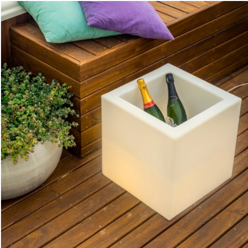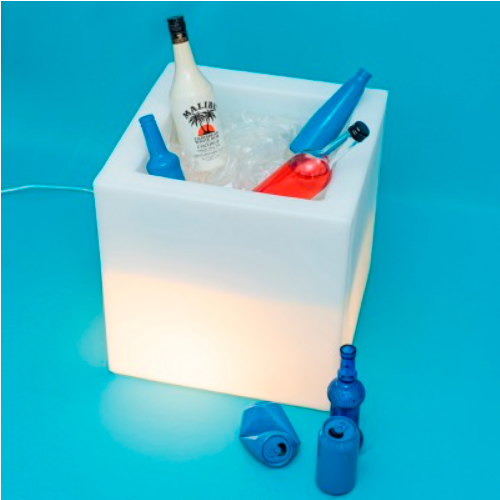 Esta champanheira com iluminação interna tem visual clean e atual e complementa a decoração de qualquer evento. A luz dá um visual moderno e elegante e, por ter parede dupla, a ouvert champ mantém a temperatura das bebidas e não condensa a água (não “sua”).