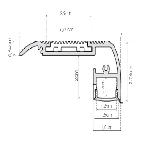 • Perfil para sobrepor em escada de alumínio com policarbonato PMMA