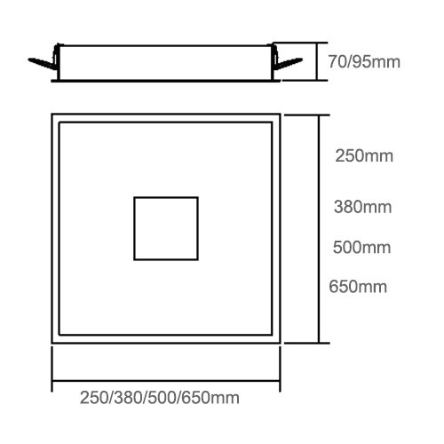 Dimensões: C: 65cm x L: 65cm x A: 9,5cm.