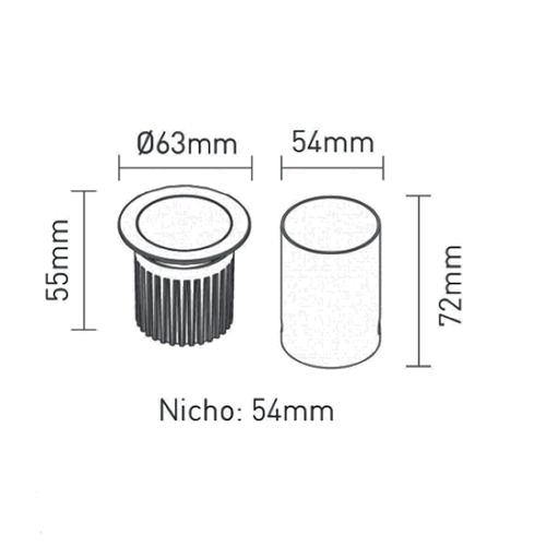 Dimensões: A:5,5cm / L:7.6cm / Ø6,3cm