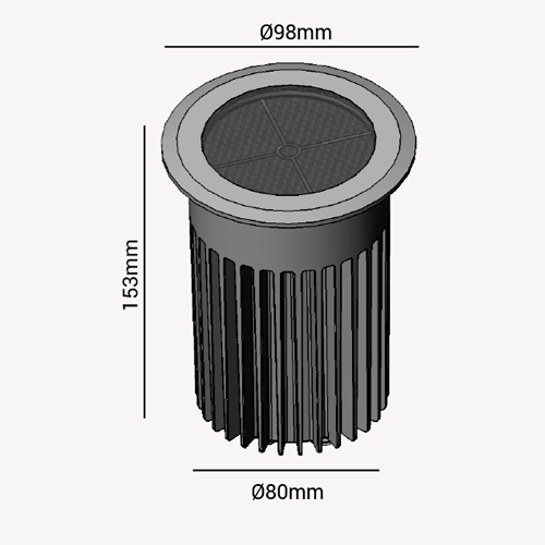 Dimensões: Ø100 x 153mm