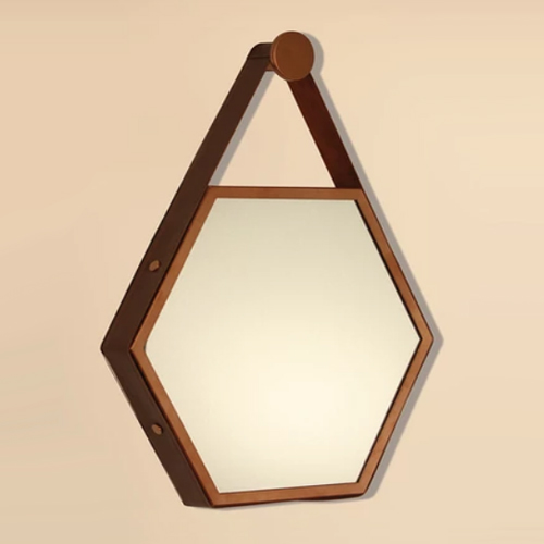 ESPELHO JULES SEXTAVADO- HEXAGONAL COM CINTA DE COURO