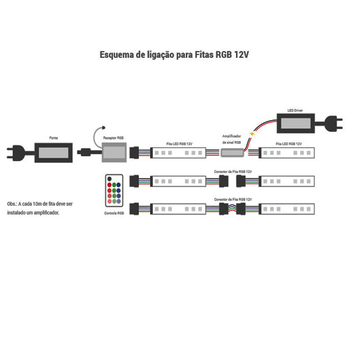Tensão: 12v – Necessário Fonte de Alimentação(Não inclusa)