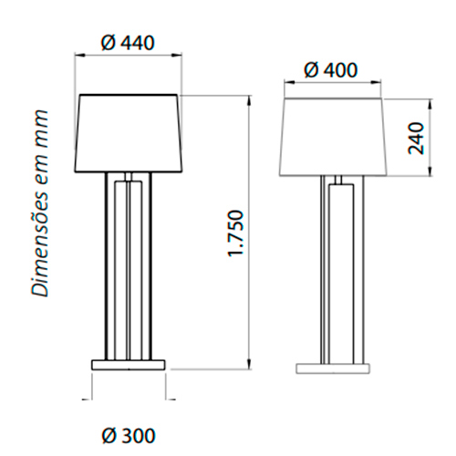 Modelo: Luminária de Chão Coluna Tripé Único com LED Integrado